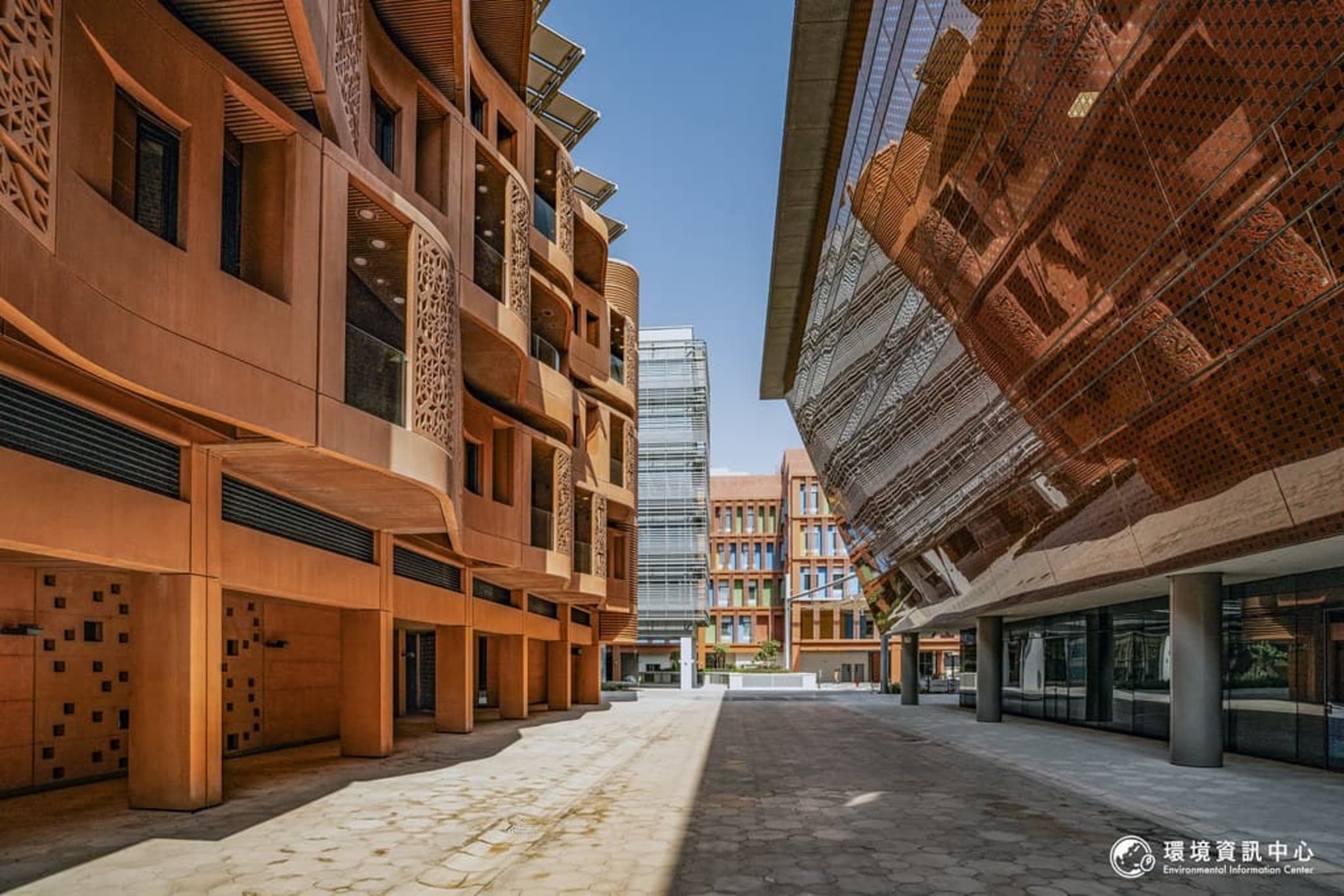 阿拉伯聯合大公國首都阿布達比氣候炎熱,降雨稀少,夏季白天戶外氣溫高達40℃。縱使來訪期間正值秋天,我們仍領教太陽的毒辣,外出總是穿著長袖防曬。然而走進阿布達比境內號稱「永續城市」的馬斯達爾城(Masdar city),卻明顯感受到溫度下降,猶如一處避暑的世外桃源。