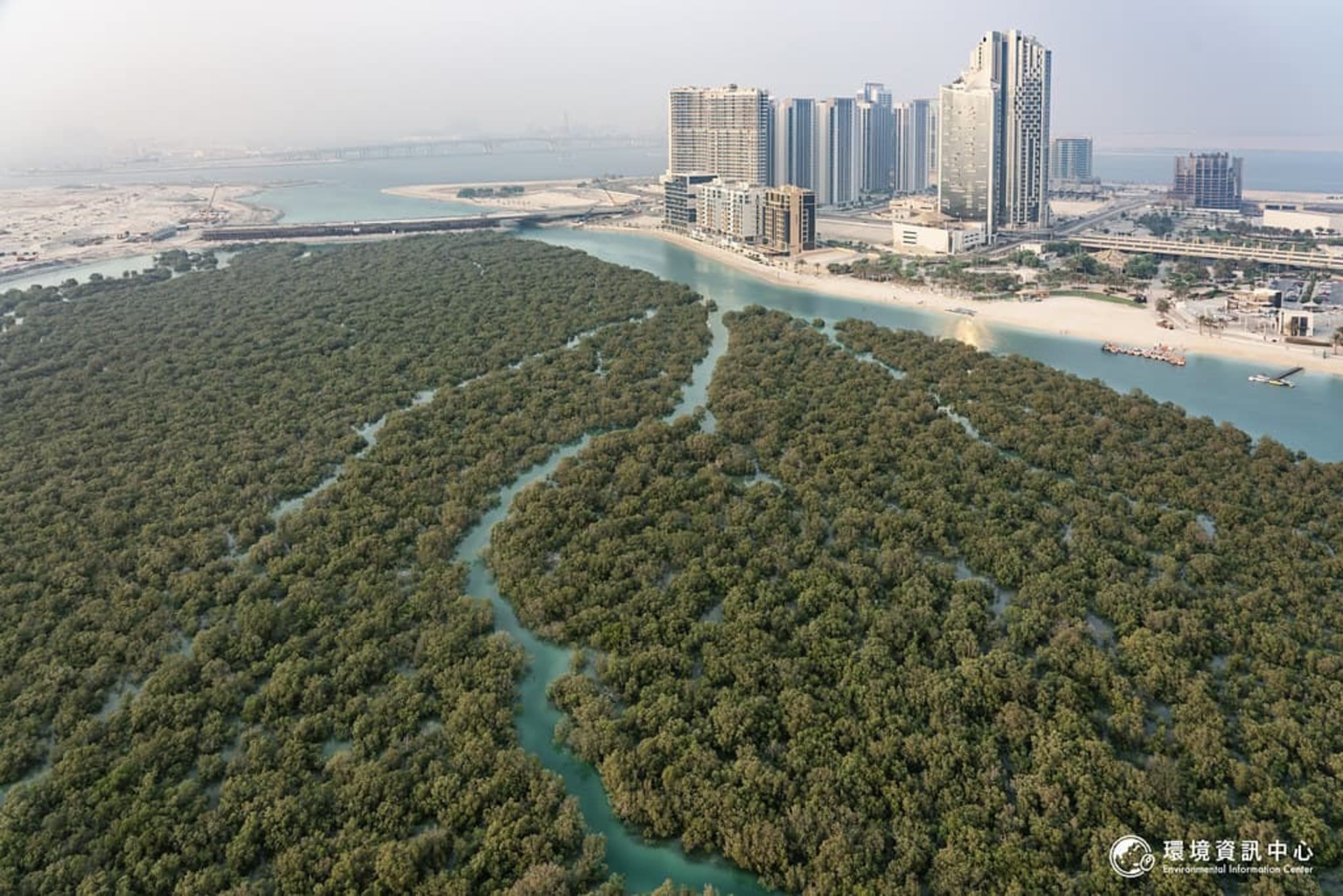 阿布達比海灘旁,海岸線與水泥高樓之間大片接壤的紅樹林,讓人很難相信自己正身處沙漠地區。今年的聯合國氣候大會(COP28)即將於11月30日登場,主辦國阿拉伯聯合大公國宣布將為每位參與者種下10株紅樹林,以抵減碳足跡。事實上,在波灣鄰近國家中,阿聯的紅樹林覆蓋面積正是最大的。